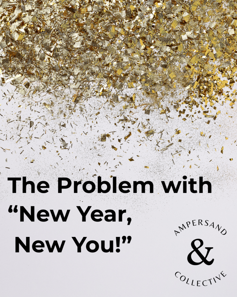 “New Year, New You” suggests that we are broken and need to be fixed, that we are not good enough as we are. This simply isn’t true, of anyone. While we all have growth areas and things we’d love to change or improve, I firmly believe that no one is “broken.” This mindset only leads to shame and self-criticism, which research shows are poor motivators for lasting change. (Yes, that inner critic may produce some initial or quick results, but it is usually short-lived and accompanied by an even larger inner critic that decreases one’s sense of self.) Growth thrives on self-compassion, not self-rejection.